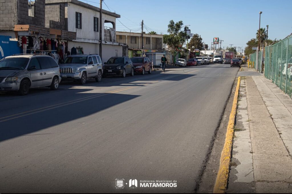 El Presidente Municipal, Beto Granados, subraya que la mejora del pavimento busca fortalecer la conectividad y seguridad vial para las familias de la zona. Matamoros,